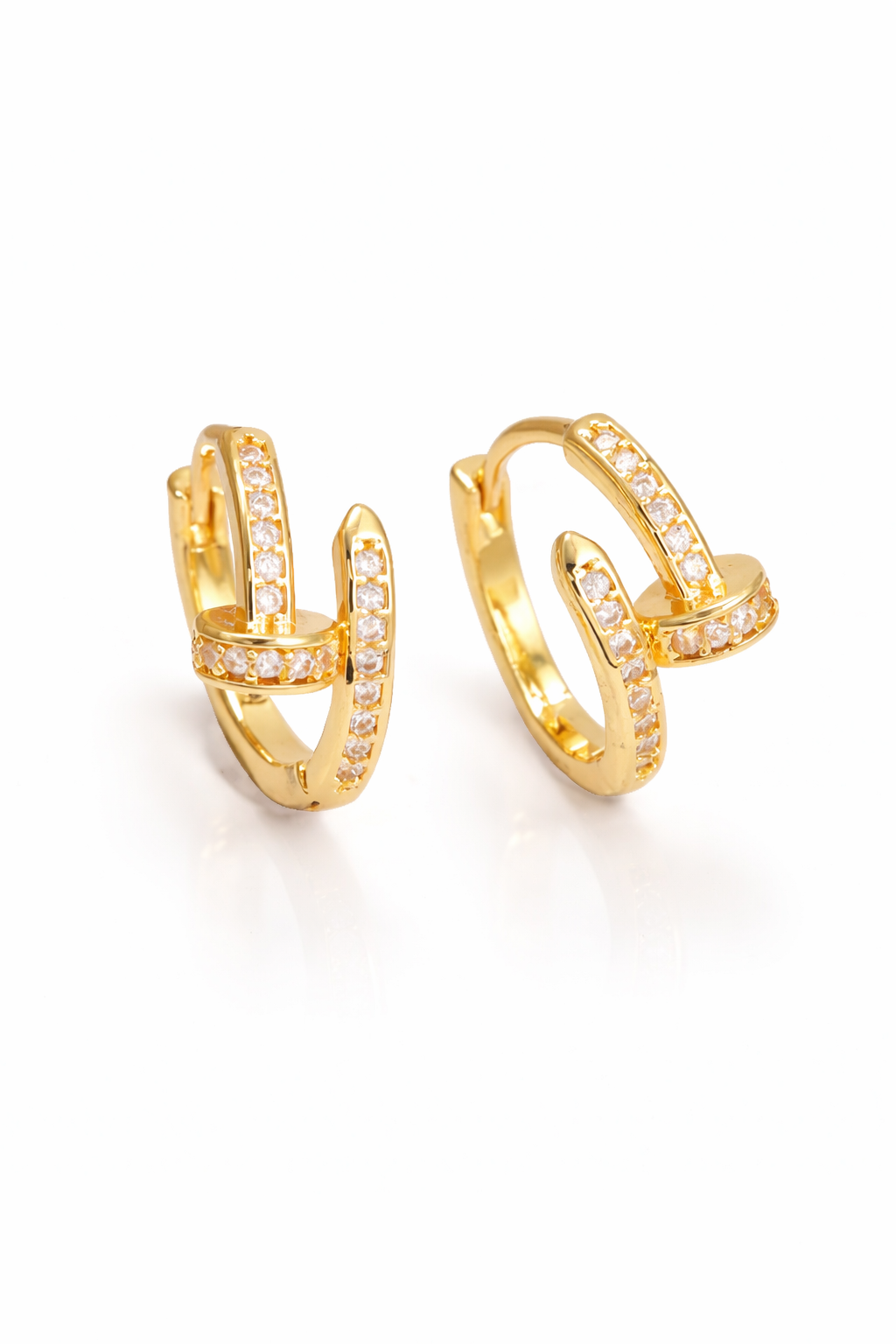 These nail-inspired gold hoops are designed to make a subtle statement. Featuring delicate pavé detailing and a modern wrap silhouette, they add just the right amount of edge to your everyday stack.